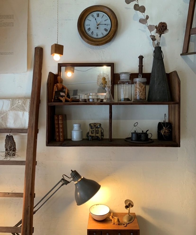 オーナーさんーー以前、中崎町の近くに古道具屋さんがあって、そこの店主に古い物の美しさ、インテリアに取り入れる方法を教わりました。訪問して5年くらい勉強させていただき、古道具の魅力に嵌りました。今では北海道から福岡まで古道具を買うため探しています。古民家や現代の家でもどちらでも古道具はインテリアとして合うのでオススメですよ。