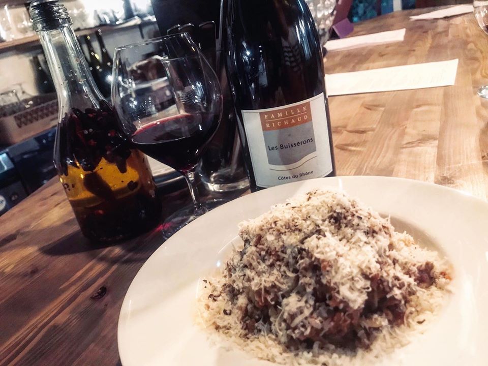 たっぷりのお肉に、削りたてのチーズ、これもワインと相性抜群!