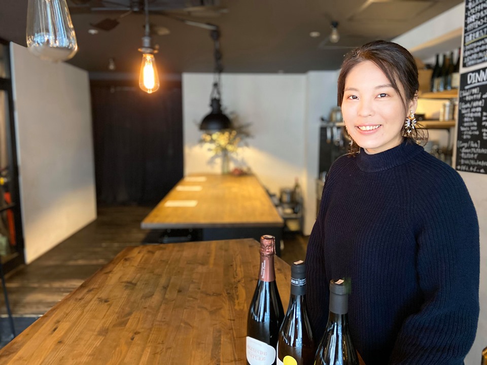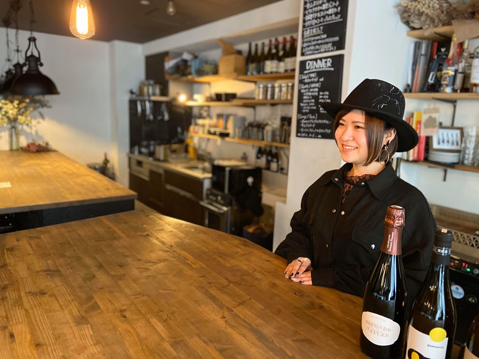 「L’occas – bar à vin -」のオーナーのJULIさん。JULIさんはデザイナーでもある。ここをオープンされる前にフランスに5年間住んでいたJULIさんはそこで自然派ワインに出逢った。現地で美味しいものを突き詰めていったJULIさんは帰国後「L’occas – bar à vin -」をオープンすることに。店内の内装やデザインもJULIさんがデザインされたそう。女性から見てもかっこいい、パワフルでエネルギッシュな女性だ。