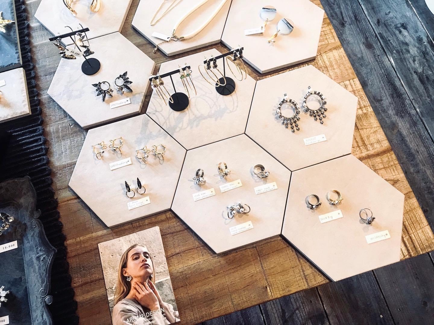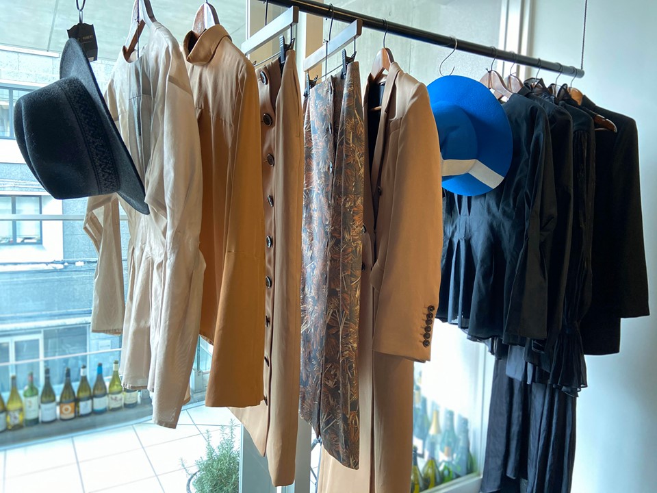 ブティックにはお洋服やアクセサリー、小物類も。お洋服はオーナーのJULIさんがデザインしたブランドのもので、帽子やコートなどはユニセックスなデザインが多く男性にも楽しんでもらえる。アクセサリーや小物類はJULIさんが定期的にヨーロッパまで買い付けに行かれている。