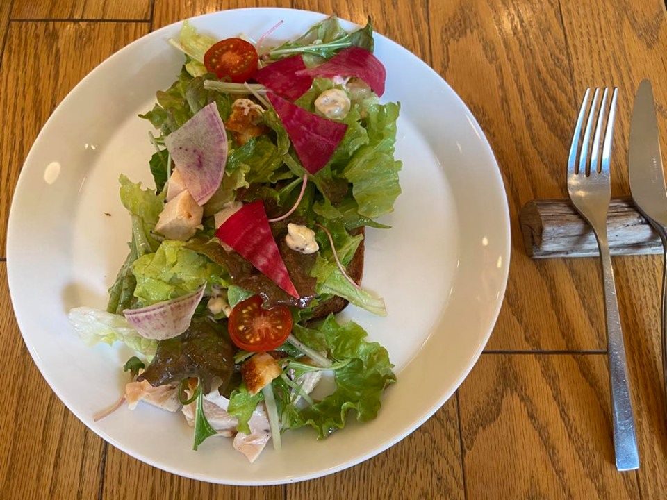 モーニングメニュー(9時~11時まで)Aセット 大山鶏の自家製ハムサラダ スモーブロー・スープ・お好きなセットドリンク(750円税別)