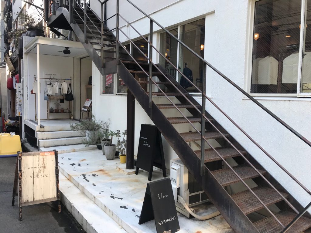 ↓店舗は真っ白な外観の建物の二階で、階段を登っていきました。