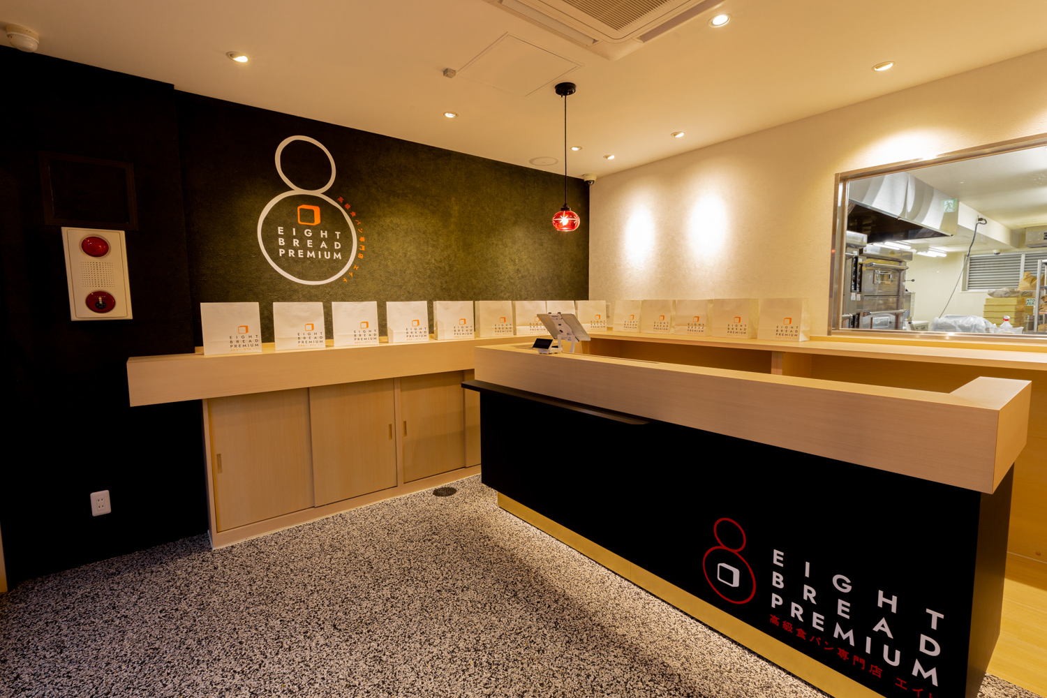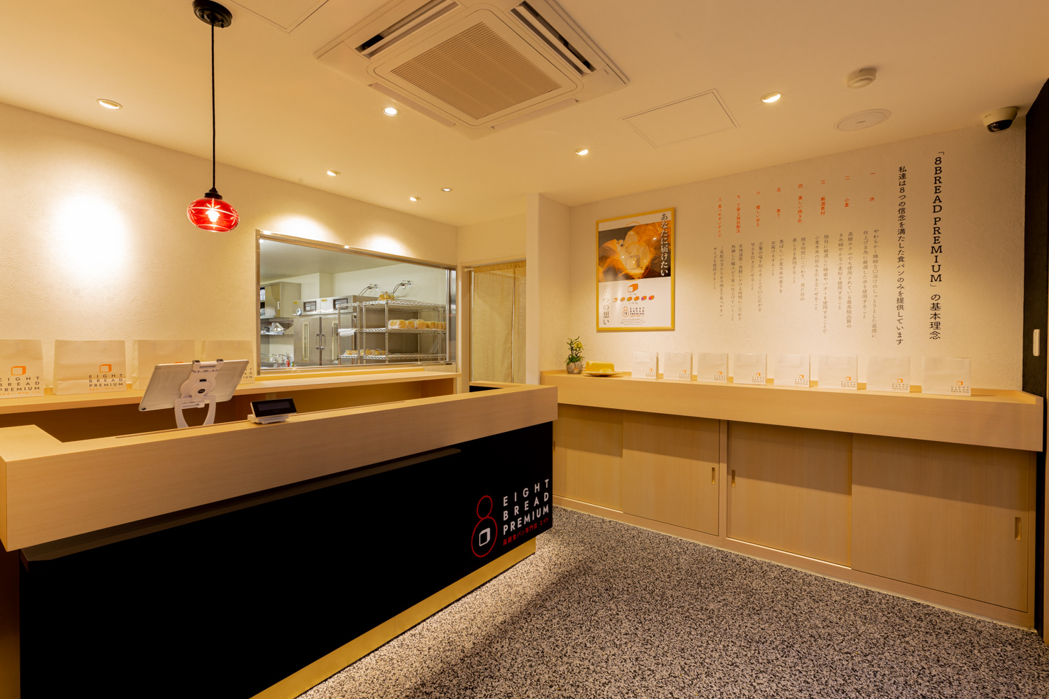 和をモチーフにした店内に入ると、ふわぁ~っとしたなんとも言えないパンの甘い香りが。視覚と嗅覚からもお客さんに楽しんでもらいたいとのことで製造場所もガラス越しでしっかり見えるようになっている。