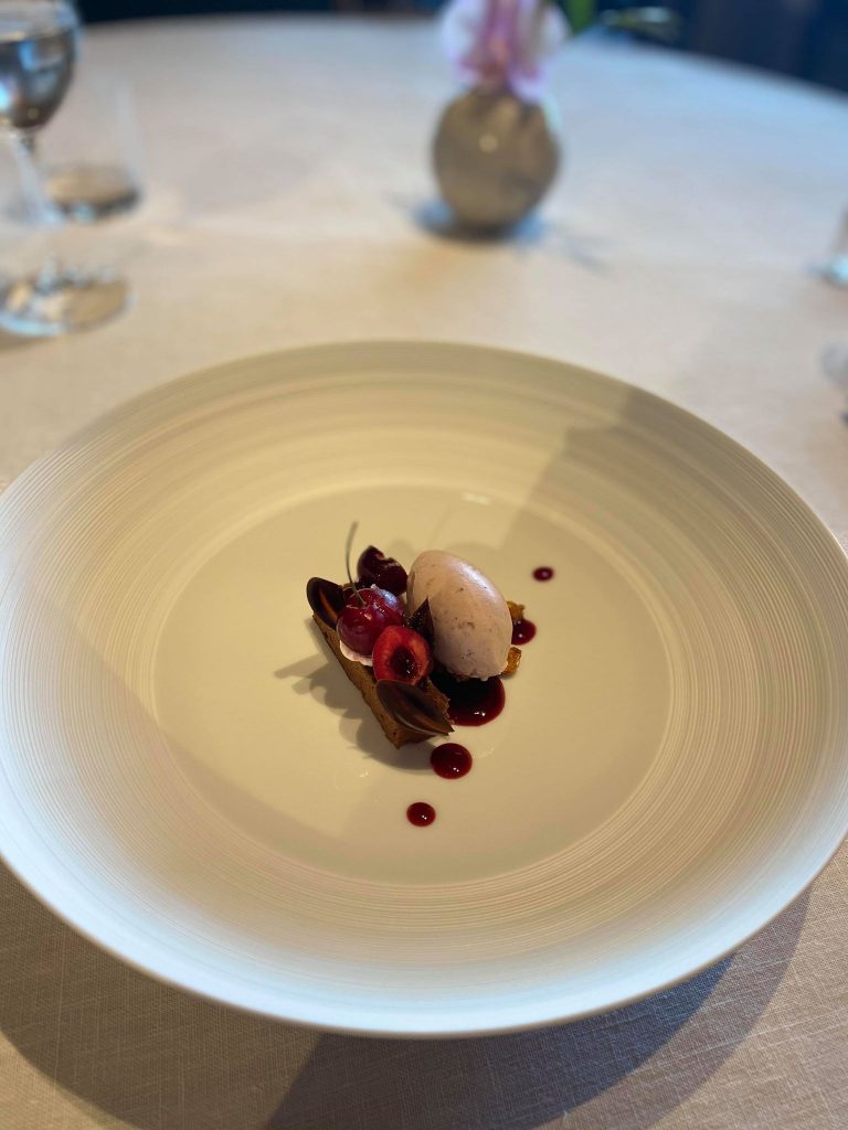 デザートはアメリカンチェリーのマセレ、ガトーショコラ