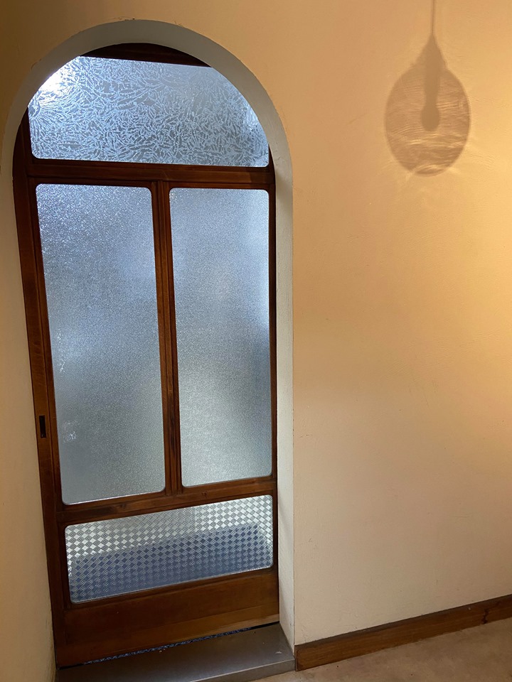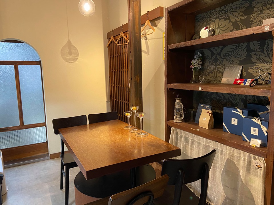 中崎町で生まれ育った中村さんは、地元で、中崎町の古民家を改装したお店を出したいと思い、3年前に「patisseri23」をオープン。窓やドアは昭和初期の頃のものである。